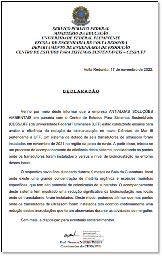 O princípio de ação do sistema ultrassom é o de cavitação gerada pelas ondas de ultrassom que causa uma implosão das bolhas de ar dos vacúolos das algas e cracas.